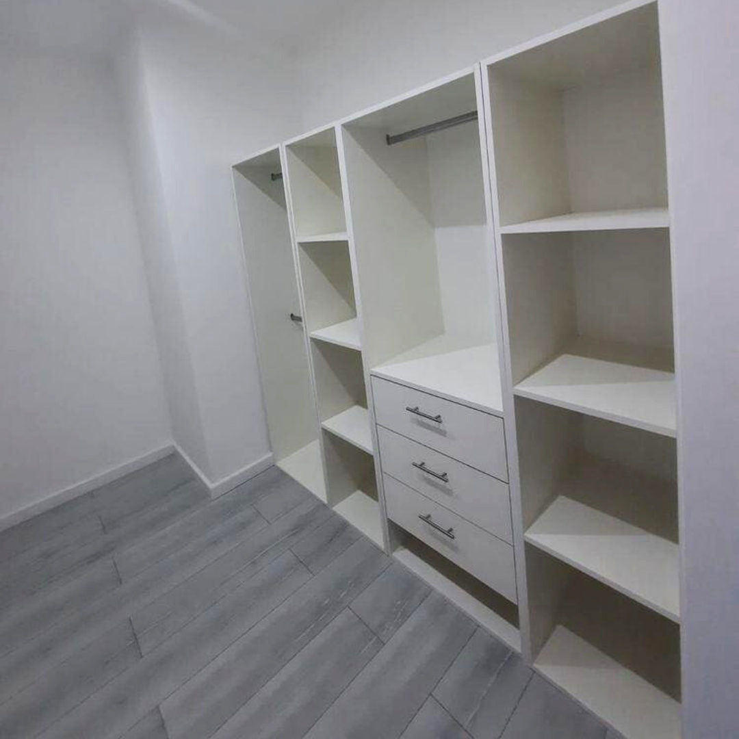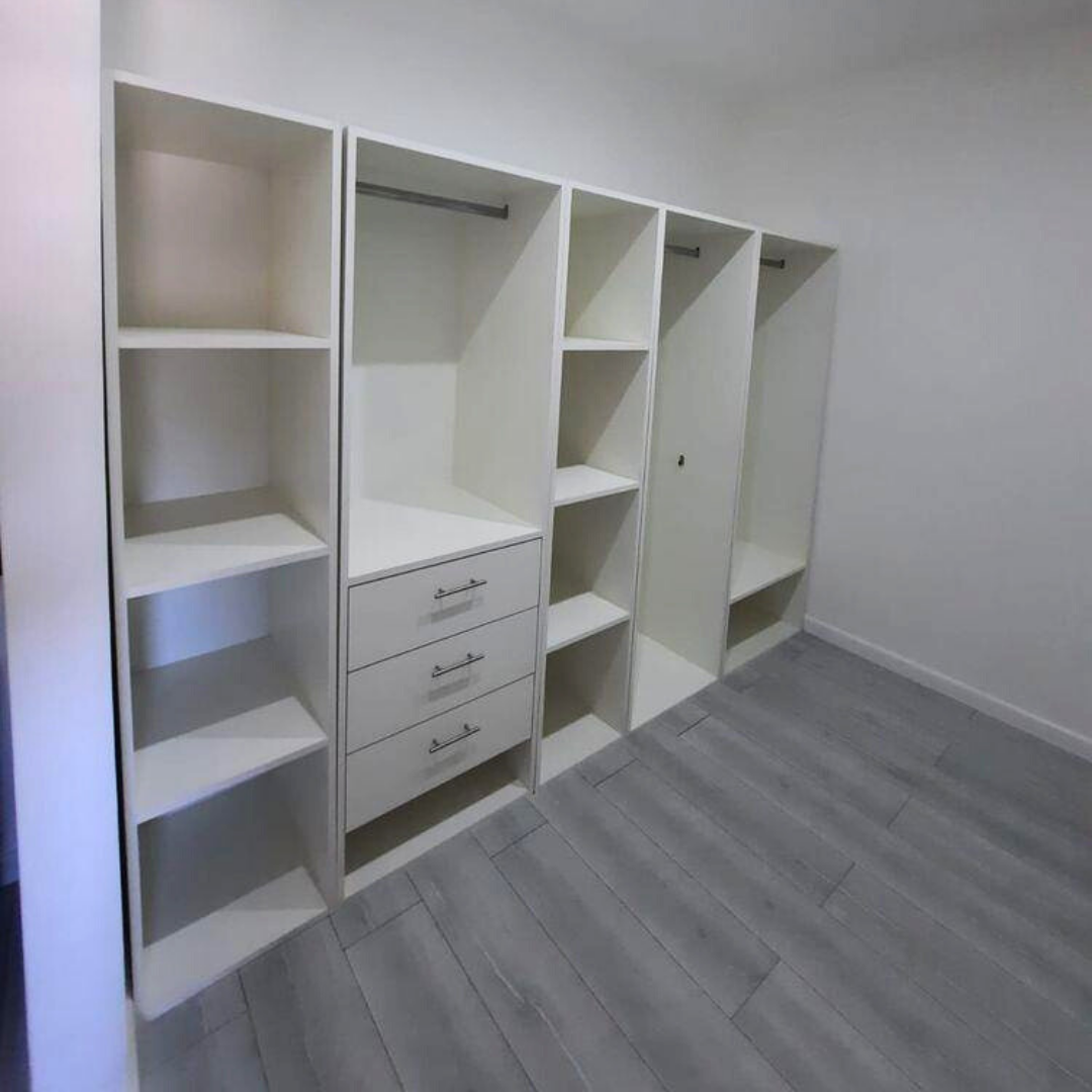 MATERIALES: Los muebles están fabricados en melamina de 18mm marca Sadepan, los tapacantos son de pvc y las bisagras son marca Ducasse.